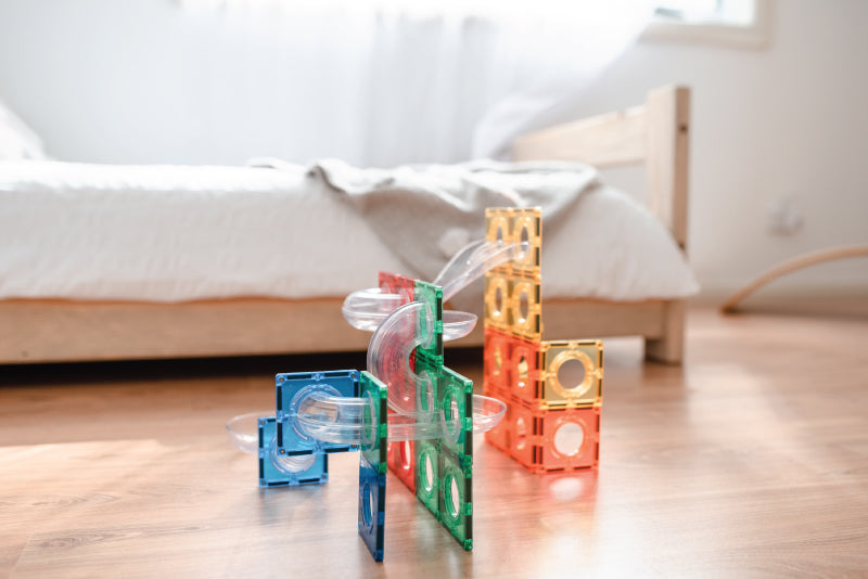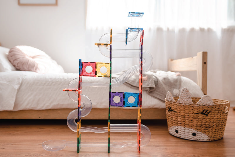 Have the best fun with this magnet tile ball run set!