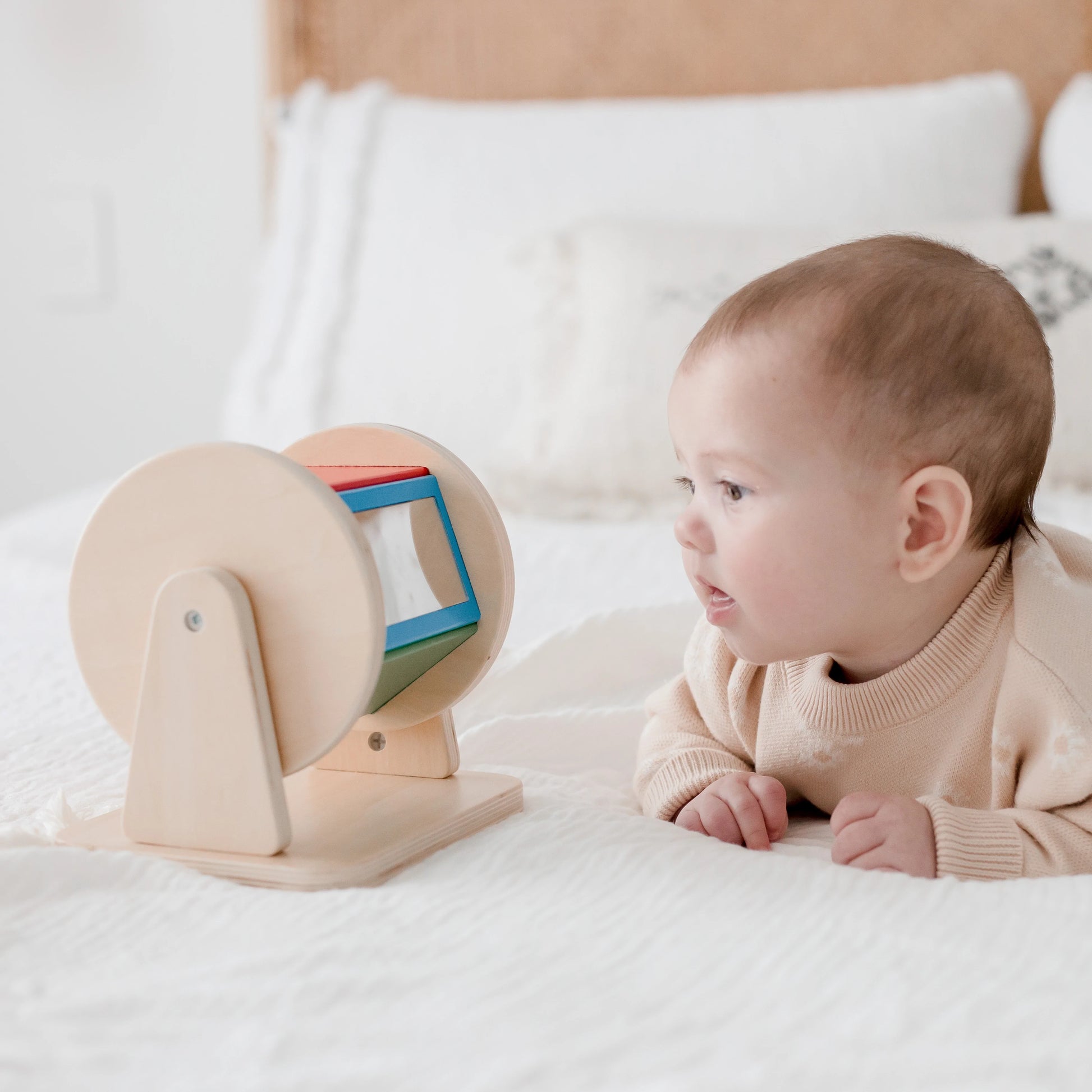 The Totli Rainbow Spinning Drum turns 360 degrees as it makes a gentle musical sound. Your little one will love gripping, spinning, and learning about cause and effect. A tummy-time favourite!